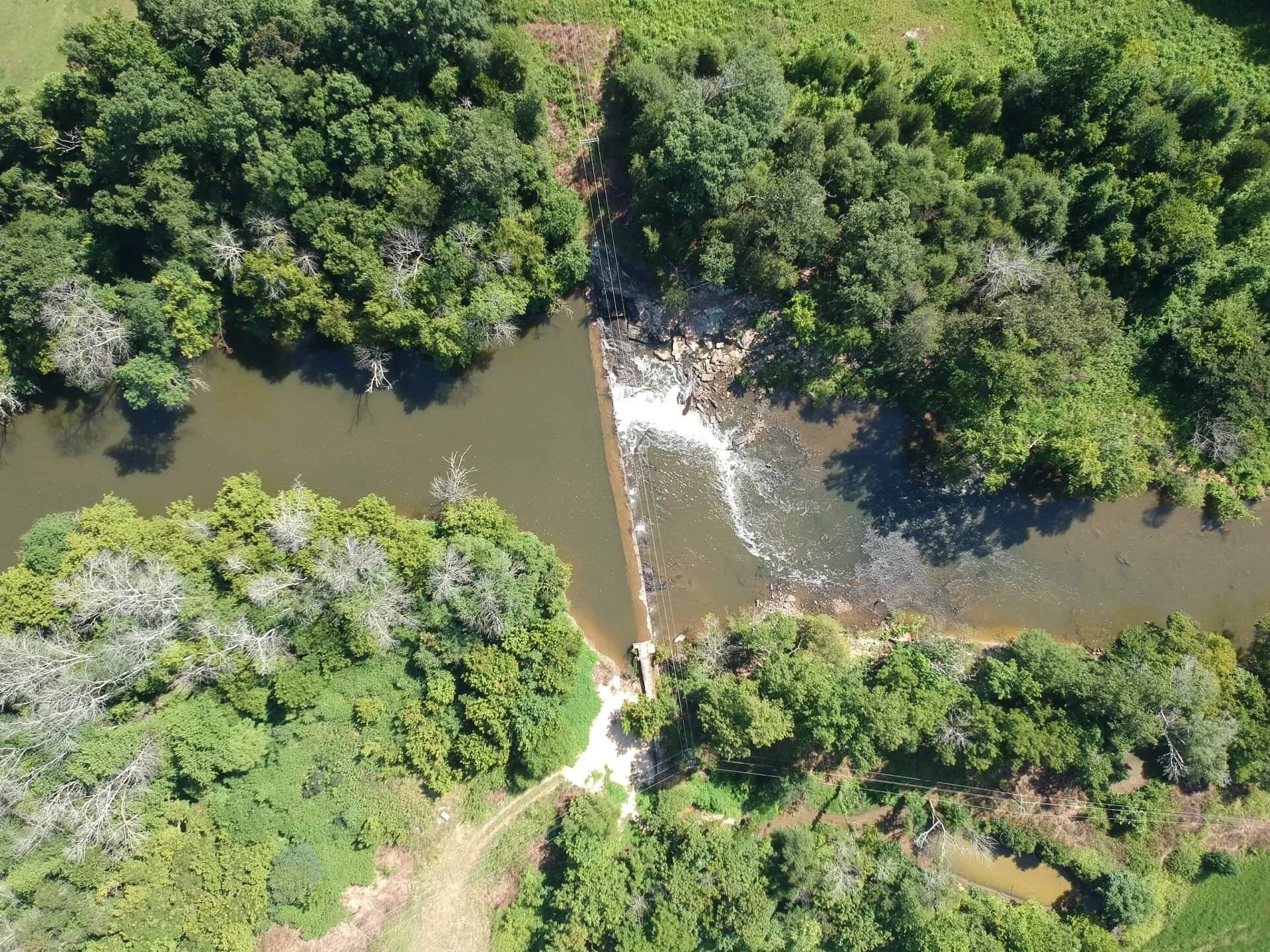 The Ossipee Mill Dam spans the Reedy Fork in Alamance County. The closest town is Ossipee, NC — just northwest of Burlington, NC. The dam is nearly one mile upstream from the confluence of the Reedy Fork and the Haw River The dam has created an impoundment stretching over two miles upstream into neighboring Guilford County. The dam is located entirely on private property and cannot be accessed by the public.